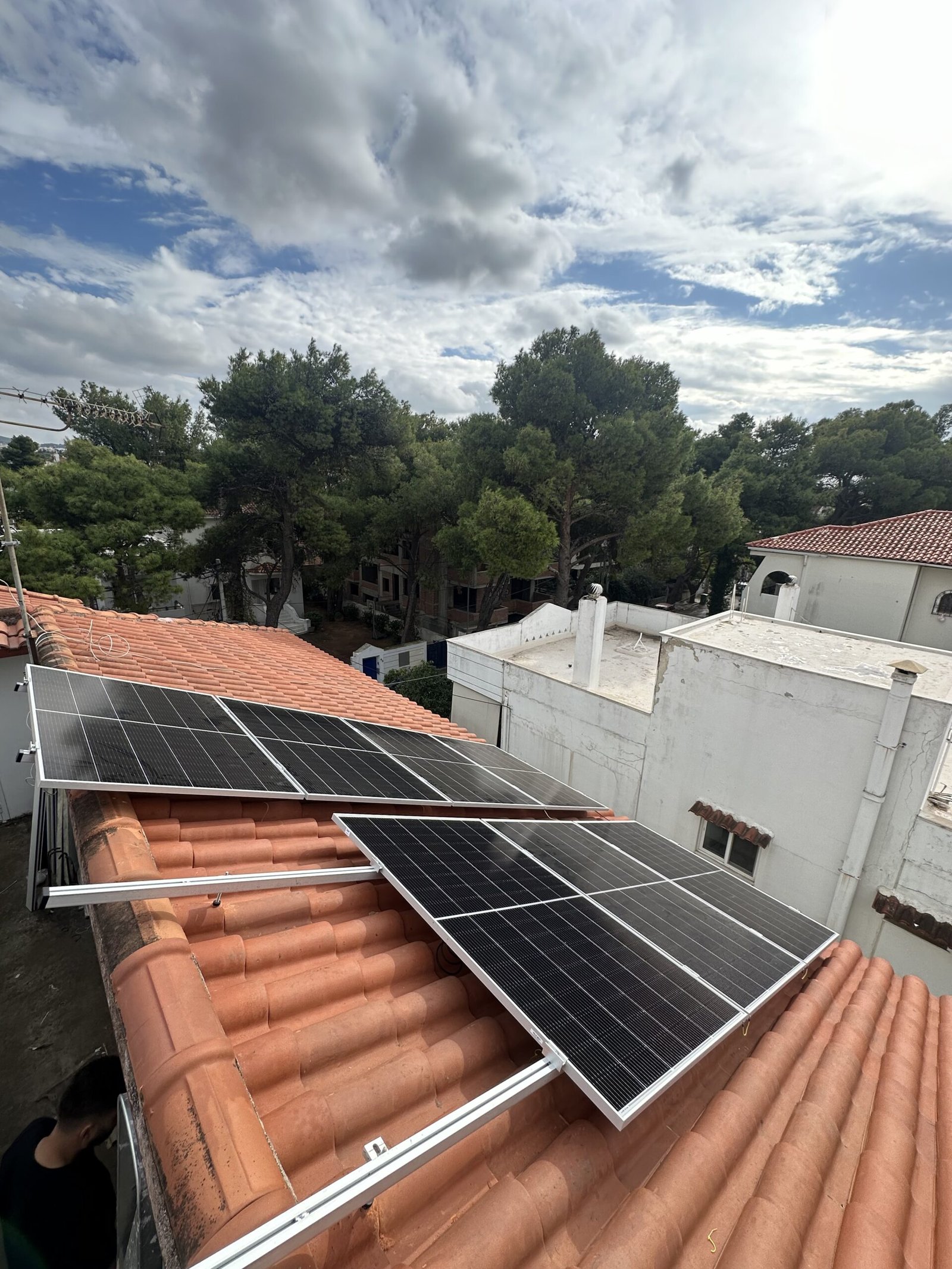 Σε κεραμοσκεπή πολυκατοικίας εγκαταστήσαμε φωτοβολταϊκό συστημα 3kW με 5kWh μπαταρία σε συνέργεια με τον υφιστάμενο πάροχο υπό τη συνθήκη του net-billing, σε τριφασική παροχή. Το έργο σχεδιάστηκε λαμβάνοντας υπόψη το προφίλ κατανάλωσης του πελάτη και την πιο γρήγορη δυνατή επιστροφή της επένδυσης του. Επίσης δόθηκε η δυνατότητα στον πελατή του τηλεχειρισμού του εξοπλισμού αλλά και τηλεμέτρησης των καταναλώσεων και της παραγωγής του μέσω ειδικής εφαρμογής στο κινητό του.